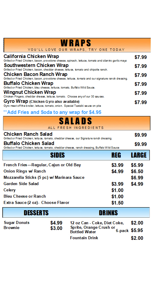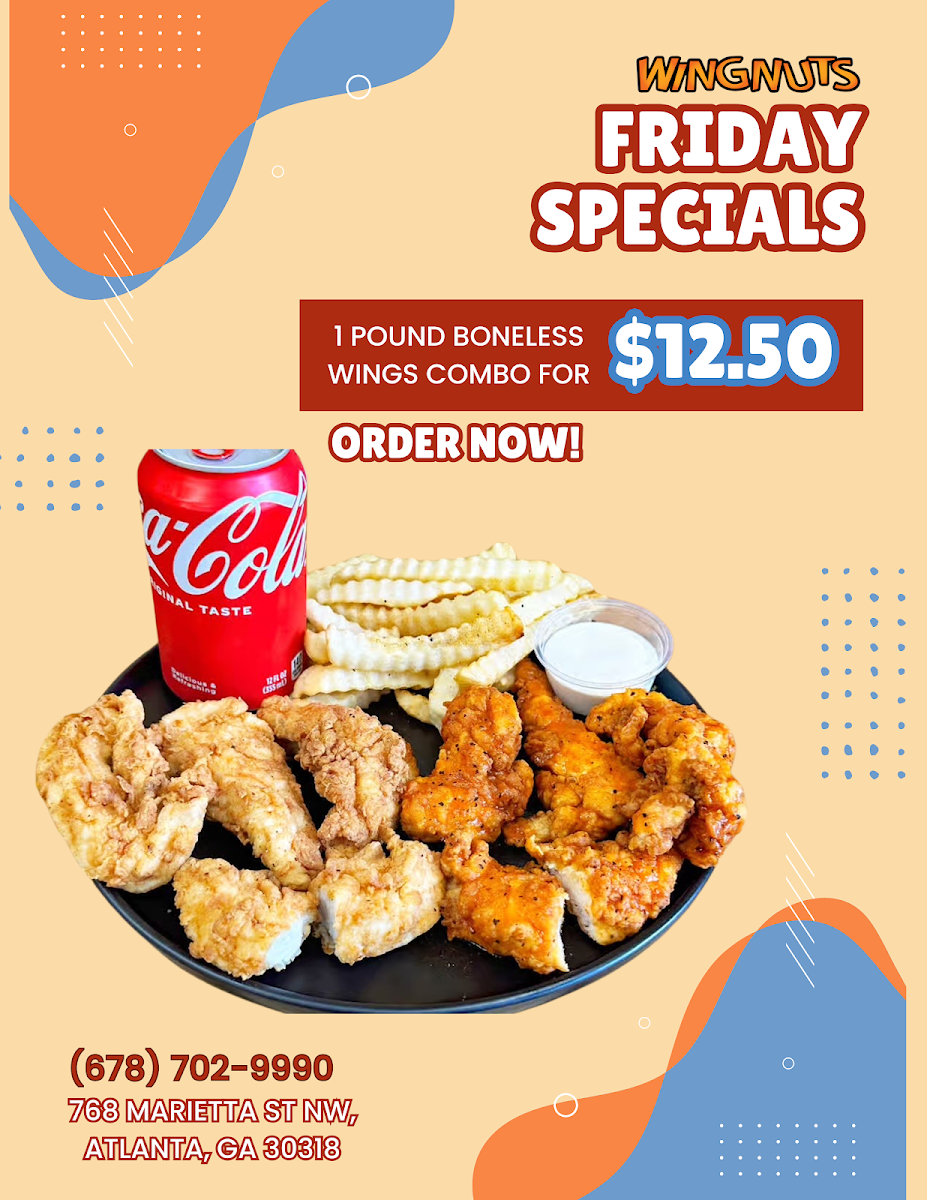 Located in Atlanta, Wingnuts brings a flavorful twist to classic comfort food. Their menu features an impressive selection of wraps, combos, burgers, and sandwiches that cater to diverse tastes. A standout favorite is the California Chicken Wrap, loaded with grilled or fried chicken and provolone cheese for just $9.99. For wing enthusiasts, the 10 Piece Wing Combo offers succulent bone-in wings paired with two sauces, fries, and a drink for $16.99.